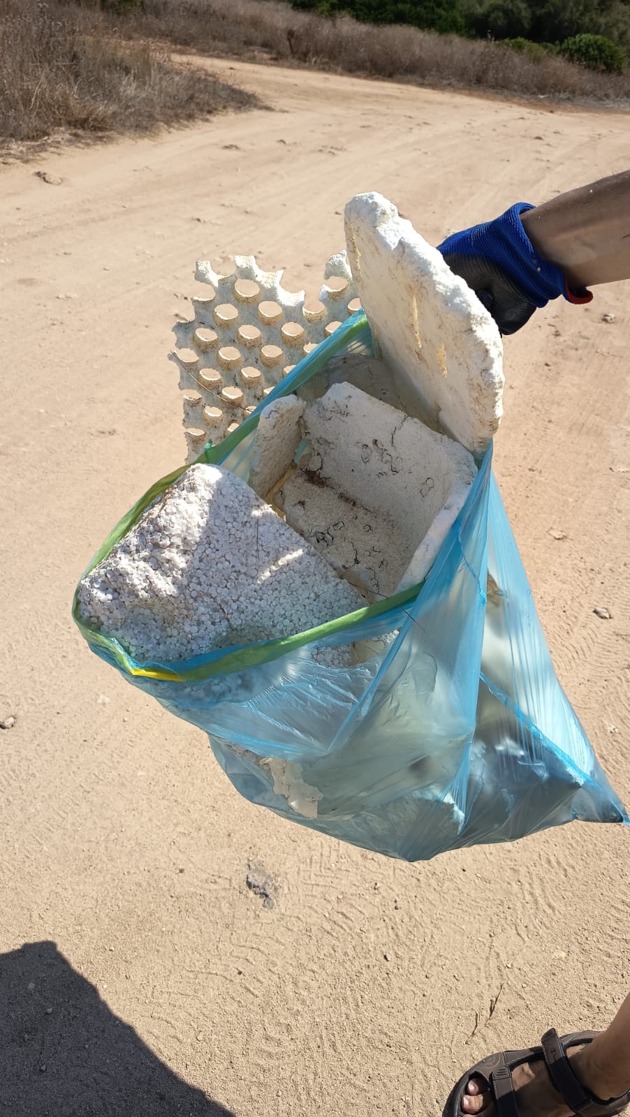 E' incredibile quante bottiglie di vetro, plastica, carte, salviette (evidentemente di chi espleta i bisogni in piena campagna), accendini, tappi di plastica, sacchetti di spazzatura "non identificata" chiusi e lanciati al bordo dei campi. E poi chili e chili di polistirolo, lattine, persino una piscinetta forata...