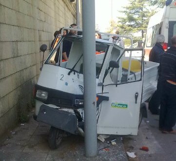 NARDO' - Una Fiat Seicento ha tamponato in zona Cimitero un apecar della Ditta Bianco, facendo impattare il mezzo sul palo della luce. L’operaio alla guida dell’ape ha sbattuto la fronte contro il vetro, andato completamente in frantumi.