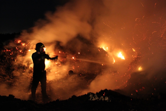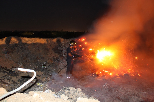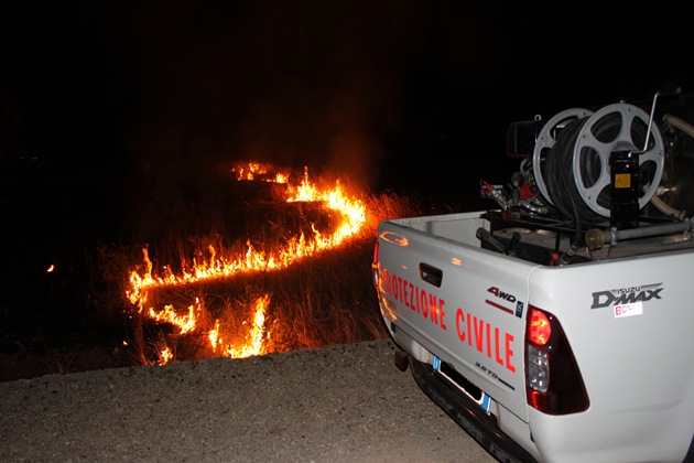 NARDO’ - Tre incendi in poche ore. È stata una serata infuocata, quella di ieri l’altro, che ha tenuto impegnati gli uomini del gruppo comunale di protezione civile del «Centro Emergenza Pubblica», coordinati da Guido Gaetani. Il primo rogo si è sviluppato, intorno alle 20.30, nei pressi di un vivaio, sulla strada che da Leverano conduce a Copertino, mandando in fumo una sorta di discarica a cielo aperto. Le lingue di fuoco hanno bruciato il materiale di risulta, gli impianti d’irrigazione abbandonati, le varie plastiche gettate con incuria sul terreno insieme a delle bottiglie di vetro, che col calore scoppiavano all’istante. Le fiamme, inoltre, sono divampate a ridosso di una piantagione in serra, interessando anche la campagna circostante. Sono stati necessari, pertanto, quarantacinque minuti per lo spegnimento e la messa in sicurezza della zona, e considerata la sua pericolosità, gli operatori hanno agito con estrema cautela, utilizzando tutti i massimi dispositivi di sicurezza. E dopo questo intervento, la «Sala Operativa Unificata Permanente» ne ha richiesti due altri in territorio di Nardò.