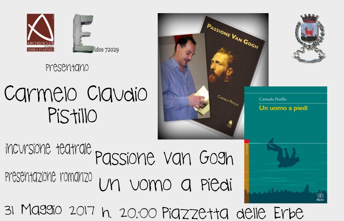 Evento a metà tra teatro e letteratura quello in programma domani, mercoledì 31 maggio, alle ore 20 in piazzetta delle Erbe, organizzato da Archeoclub Terra d’Arneo e Eidos 72029 con il patrocinio del Comune di Nardò. Carmelo Claudio Pistillo, poeta, narratore e drammaturgo, è protagonista dell’incursione teatrale Passione Van Gogh, un breve testo in cui Vincent Van Gogh si materializza sulla scena al museo di Amsterdam e imbastisce così un misterioso dialogo-monologo con i suoi fantasmi, fantasmi della sua psiche malata. Pistillo ripercorre alcune tappe della vita dell’artista nello sforzo di afferrare il nesso tra la sua arte, la sua follia e il senso forte e sanguigno della natura. Un intreccio tra vita, pittura e scrittura che tratteggia la figura di un artista, mosso da grandi passioni e ideali. L’autore, insomma, da abile teatrante, traccia una coinvolgente successione di scene, che, al di là di un sicuro contributo per una maggiore conoscenza di Van Gogh, esprime anche e soprattutto un atto d’amore per l’arte, il teatro, la poesia.