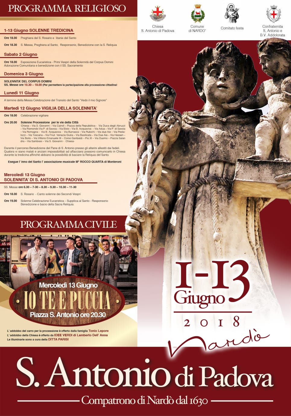 Spettacolo-Cultura Festa di Sant'Antonio da Padova. Il programma scaricabile Stampa NARDO' - Ecco, per voi, il file con tutti gli appuntamenti. La festa sta per arrivare: santantonio.jpg