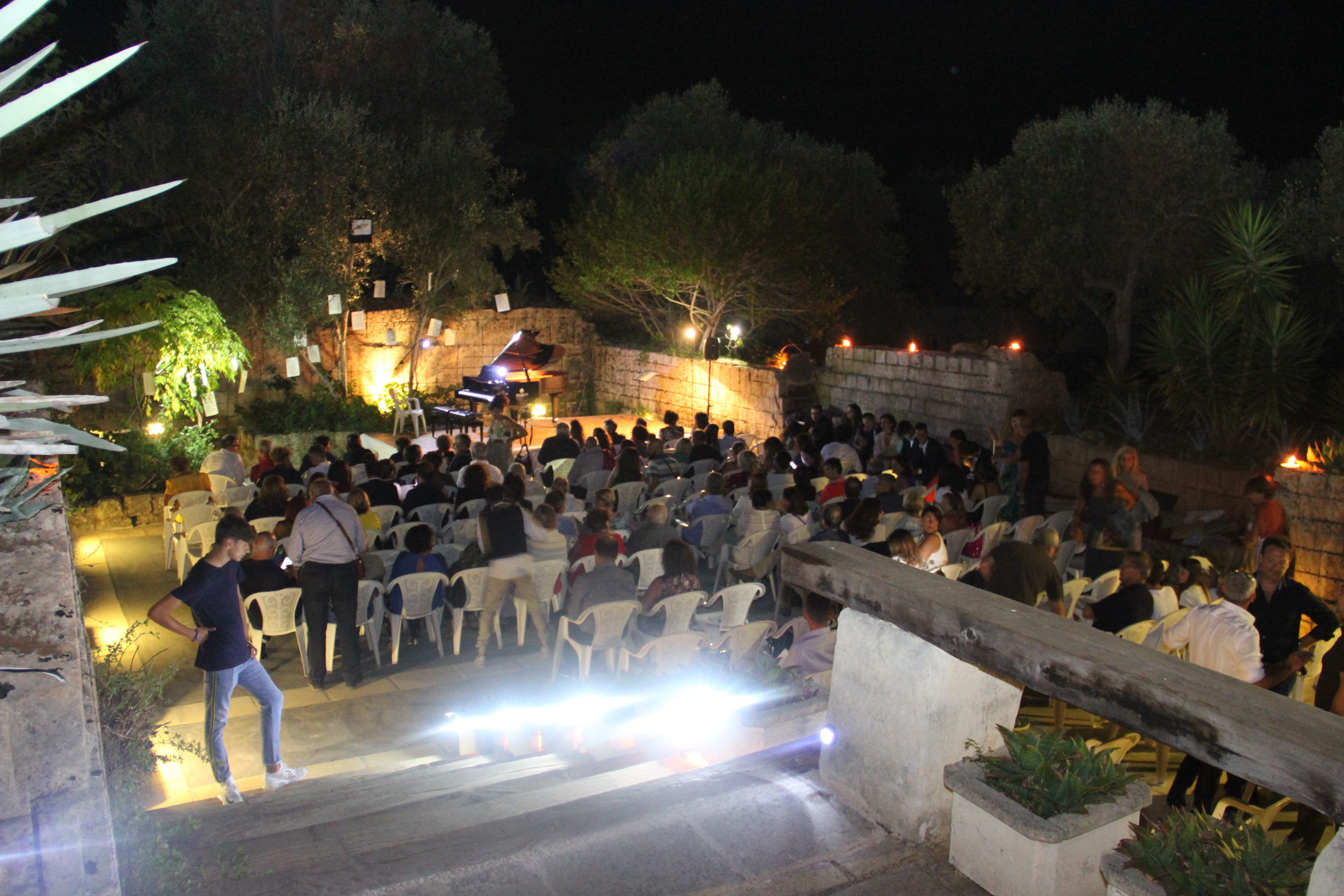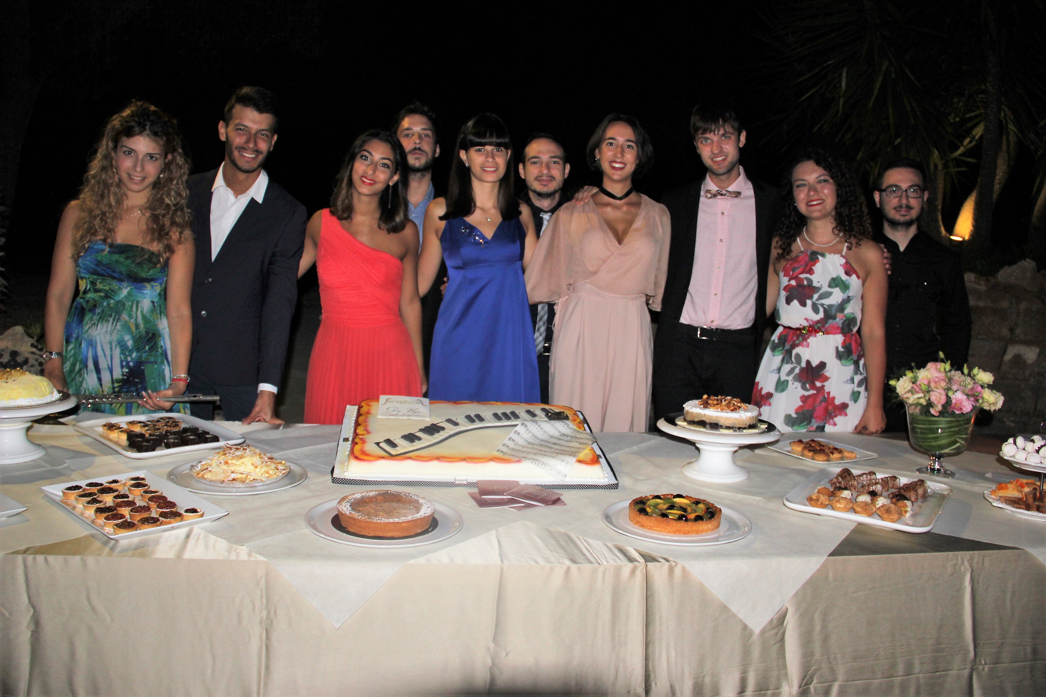 I giovani e talentuosi musicisti dell’Associazione Seraphicus festeggiano i due anni di attività con il concerto “Calici di note”, ospiti di Tonino ed Antonella De Riccardis nella suggestiva cornice della Cavacinquanta, davanti ad un pubblico numerosissimo ed entusiasta. Le musiche proposte, che vedono alternarsi un organico per pianoforte a due, quattro e otto mani, pianoforte e flauto, pianoforte e sax tenore, sembrano evocare atmosfere sognanti o festose dell’estate che volge al tramonto: dai malinconici “Souvenirs de Munich” di Chabrier ai ritmi festosi della “Tarantella Napoletana” di Bordese-Galluzzo alle esotiche suggestioni delle “Danze norvegesi” di Grieg, delle “Danze ungheresi” di Brahms, della “Czardas” di Monti. Concludono la serata le degustazioni di dolci a cura di Pasticceria “Ugo Cake Designer” - Casarano e di vino a cura di Schola Sarmenti - Nardò.