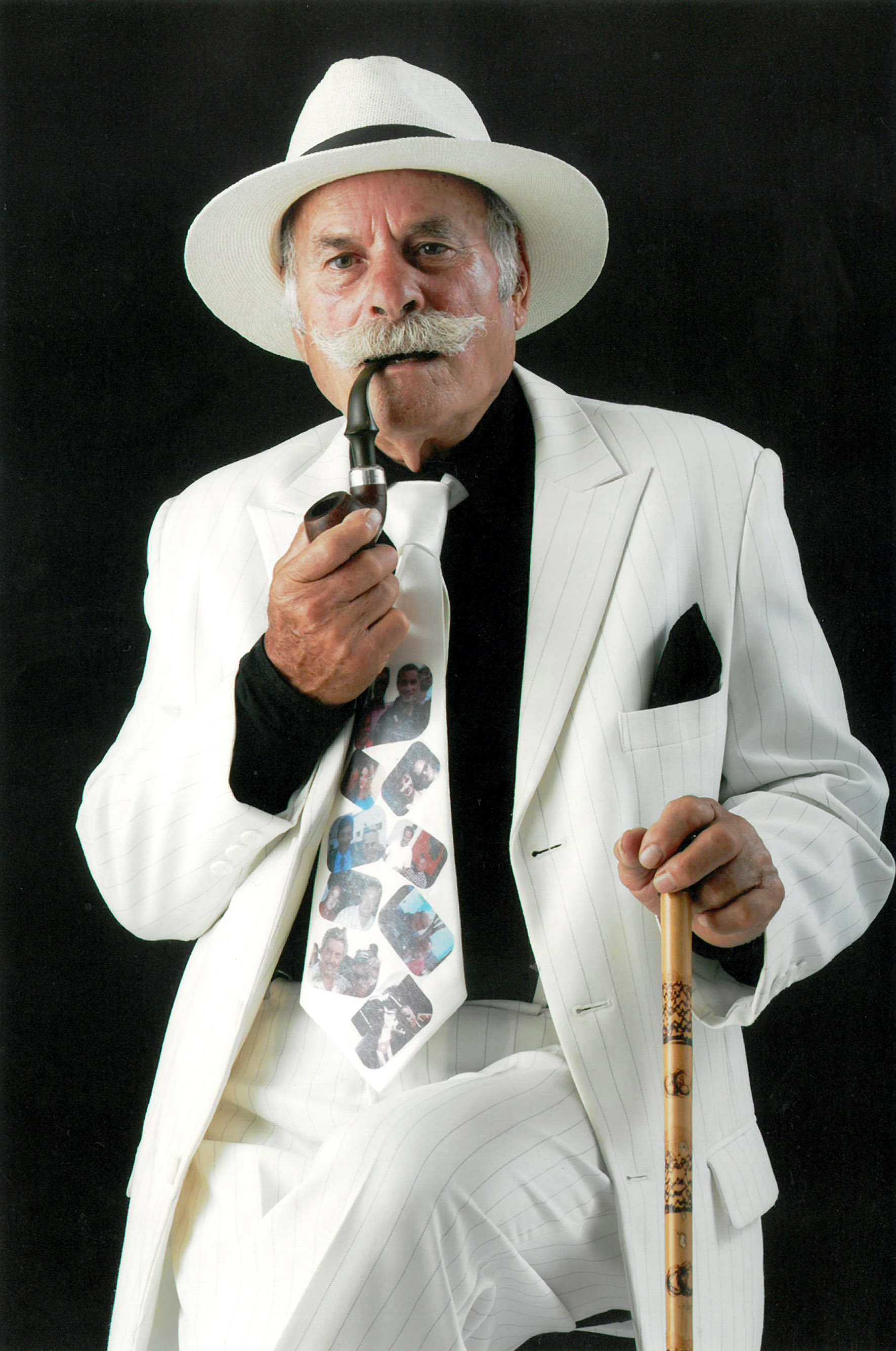 I frequentatori della piazza neretina avranno certamente avuto modo di incontrare Fernando mentre passeggia spensierato con la sua amata cagnolina al guinzaglio o sorseggia amabilmente un caffè seduto ai tavolini di un bar. Uno stile inconfondibile, un vero e proprio marchio di fabbrica: vestito bianco latte, cravatta che riporta le foto dei suoi successi cinematografici, cappello modello Humphrey Bogart, e, nel taschino interno della giacca, il suo inseparabile curriculum vitae, che sfoggia all’occorrenza come fosse il proverbiale asso nella manica: una foto profilo che lo ritrae coi suoi ineffabili baffi bianchi a punta, qualche dato anagrafico, seguito poi da una sfilza incredibile che copre tre pagine fitte fitte di “esperienze cinematografiche”. Una cosa fuori dall’ordinario, credetemi.