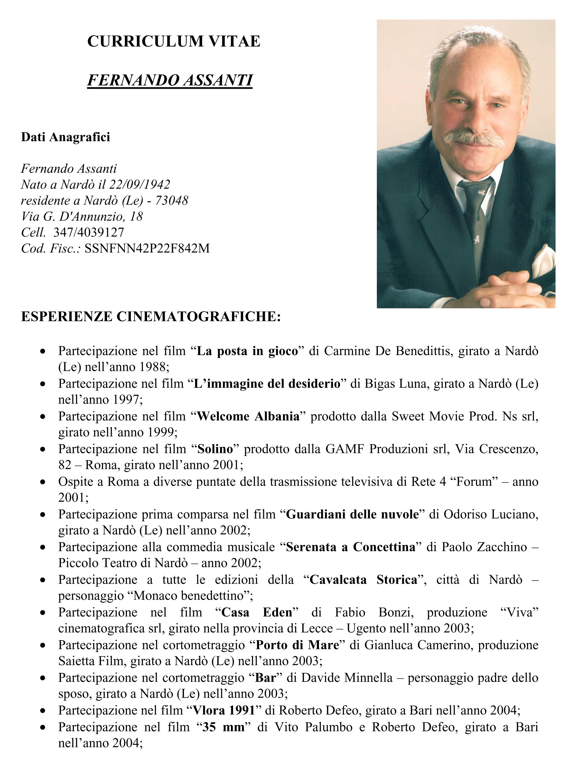 Quindi per noi FERNANDO ASSANTI, il protagonista principale di questa storia, è e resta un grande attore, indipendentemente dai ruoli e tempi dei suoi film, lunghi o corti che essi siano stati, dalle semplici comparse di pochi secondi alle proiezioni che l’hanno visto invece attore in scene più elaborate.