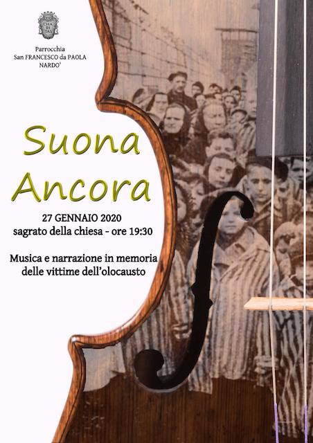 NARDO' - Lunedì 27 gennaio alle ore 19.30, "Giorno della Memoria", presso la Parrocchia San Francesco da Paola, musica e narrazioni si intrecceranno in "Suona ancora", un evento coordinato da don Angelo Corvo e sostenuto dal Consiglio pastorale per ricordare quanti subirono le terribili conseguenze dell'Olocausto.