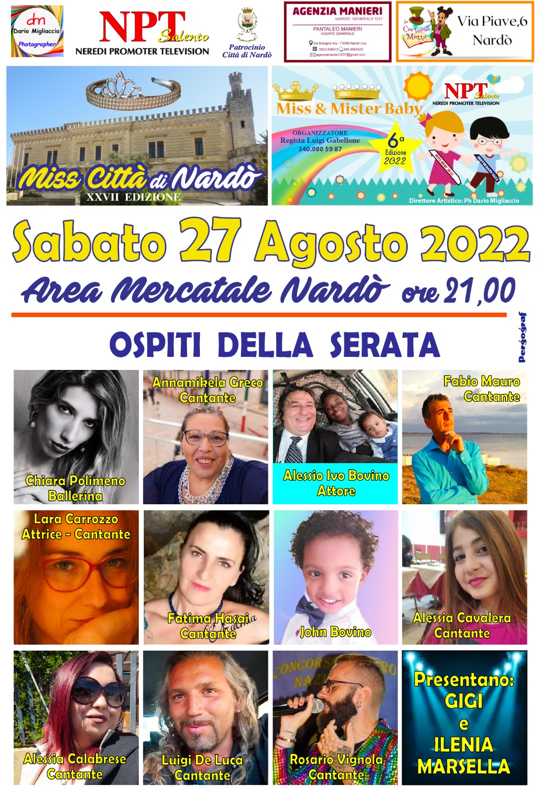 NARDO' - Il concorso è giunto alla sua XXVII Edizione. Nelle scorse edizioni erano presenti oltre 200 persone e quest’anno si spera in un successo ancora più grande. Per creare un legame ancora più stretto con il territorio, saranno assegnate altre fasce oltre a Miss Città di Nardò: Miss Telestreet Nardò, Miss Estate Nardò, Miss Fotomodella, Miss e Mister baby