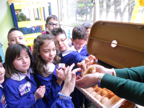 «In occasione della Santa Pasqua abbiamo voluto regalare ai bambini delle nuove emozioni – spiegano le insegnanti - facendoli capire il valore simbolico delle uova pasquali, ma soprattutto della vita». Sono 17 in tutto, i simpatici pulcini che hanno fatto appassionare i piccoli studenti, che da 21 giorni controllavano con trepidazione l’incubatrice che appariva ai loro occhi come un piccolo forno di colore rosso, dal nome «Covatutto». È stata sicuramente un’iniziativa originale che ha abbracciato tutte le discipline, dalle scienze alla storia, dalla religione all’educazione civica, stimolando la sensibilità dei piccoli studenti che hanno imparato a prendersi cura della vita, ancor prima della nascita dei pulcini. Le uova fecondate in una fattoria, infatti, sono state adagiate nell’incubatrice elettrica alla temperatura di circa 37 gradi e ogni 12 ore dovevano essere spostate con un’astina.