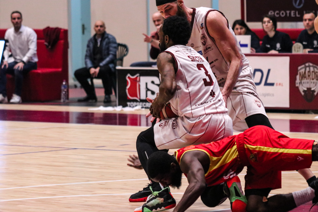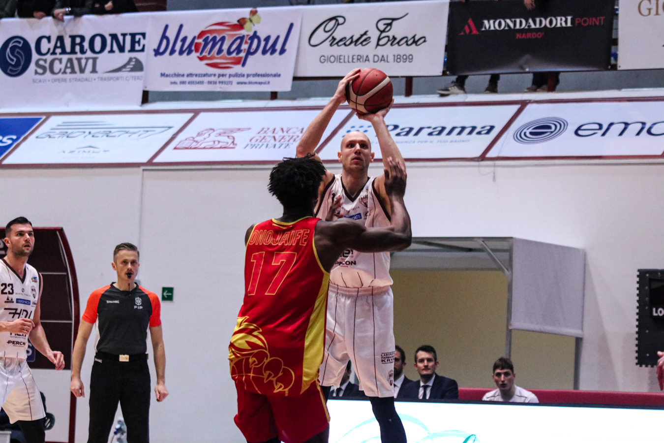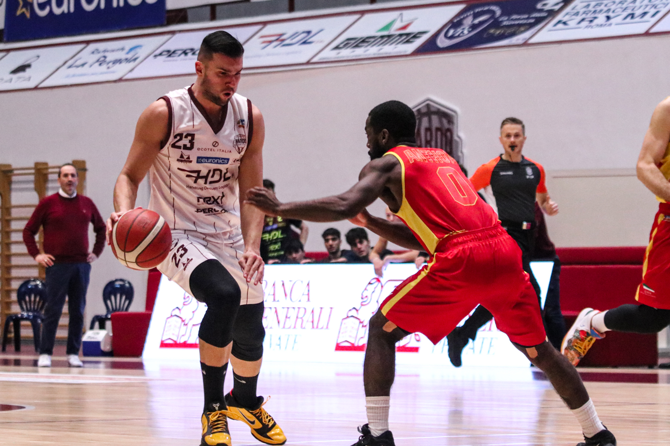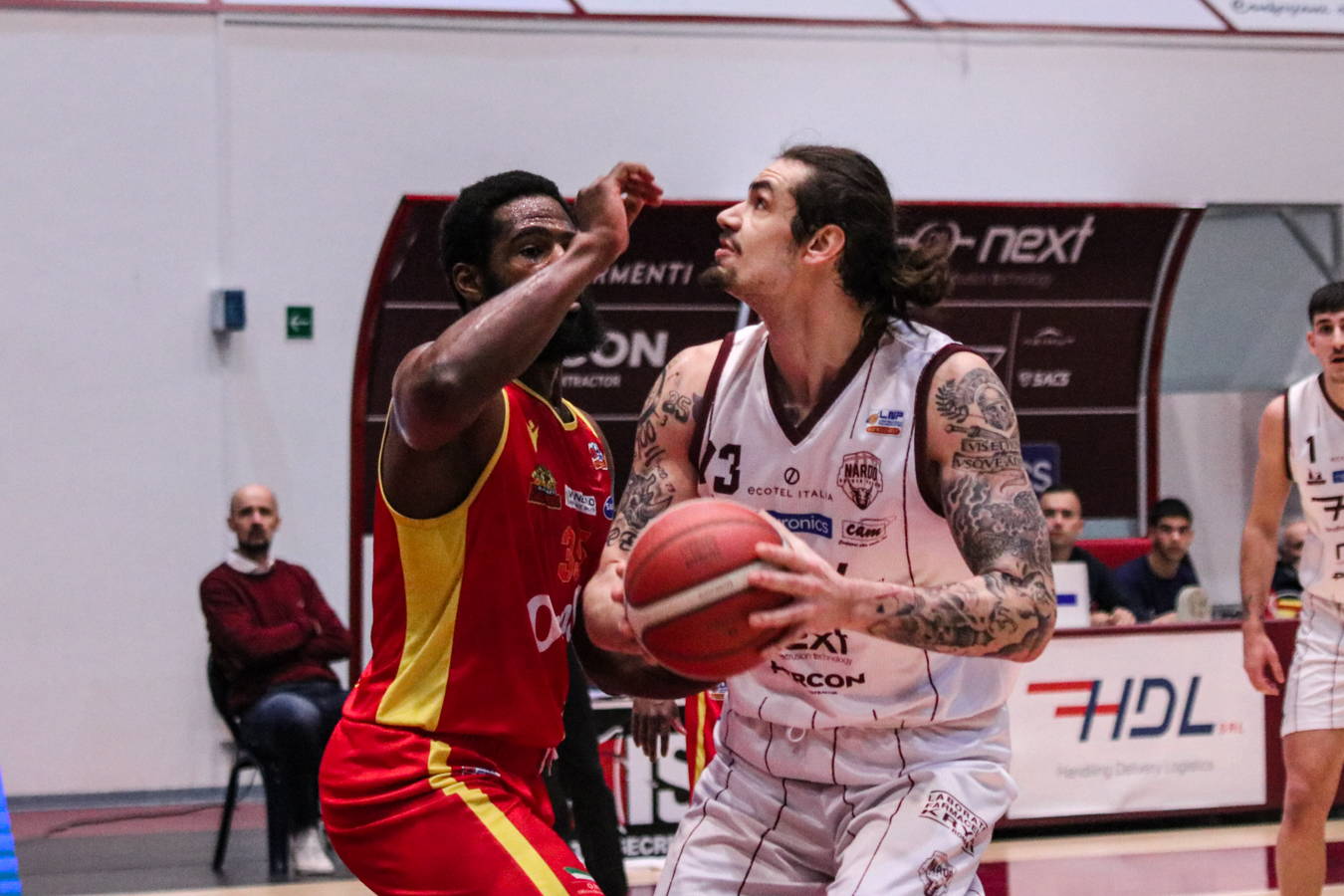 2° QUARTO – La Torre fa 2/2 dai 6,75 metri permettendo a Nardò di restare in partita. I padroni di casa continuano ad inseguire nel tentativo di riagganciare Ravenna che, però, continua a superare il fondo della retina mantenendo saldo il mini-vantaggio. Stojanovic firma il -4 insistendo in fase offensiva e sfruttando la maggiore fisicità, timeout per coach Lotesoriere. Al rientro è blackout granata e allungo ospite, con Bonacini che segna la tripla del 37-44. Termina 41-49 prima dell'intervallo lungo.