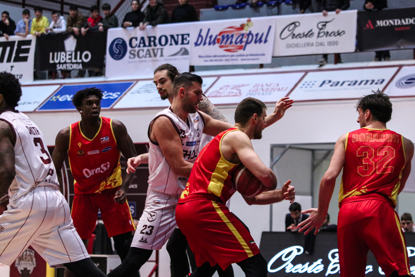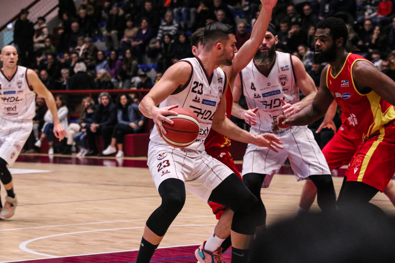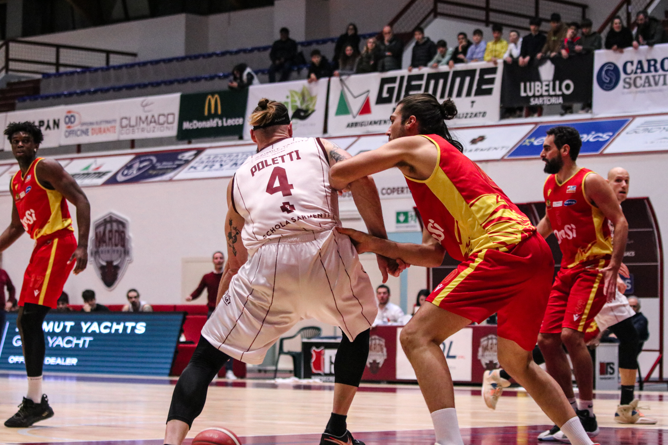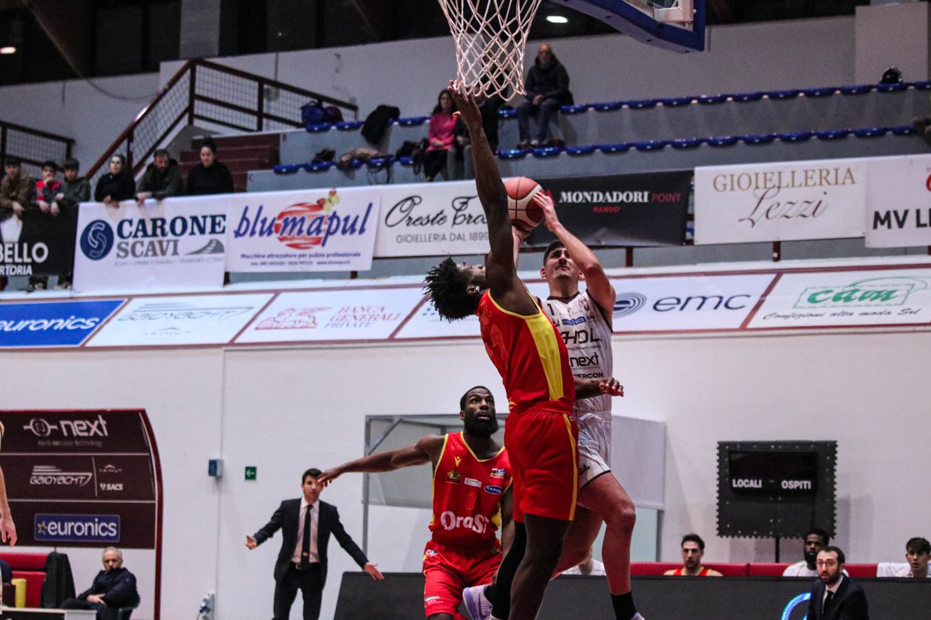 2° QUARTO – La Torre fa 2/2 dai 6,75 metri permettendo a Nardò di restare in partita. I padroni di casa continuano ad inseguire nel tentativo di riagganciare Ravenna che, però, continua a superare il fondo della retina mantenendo saldo il mini-vantaggio. Stojanovic firma il -4 insistendo in fase offensiva e sfruttando la maggiore fisicità, timeout per coach Lotesoriere. Al rientro è blackout granata e allungo ospite, con Bonacini che segna la tripla del 37-44. Termina 41-49 prima dell'intervallo lungo.