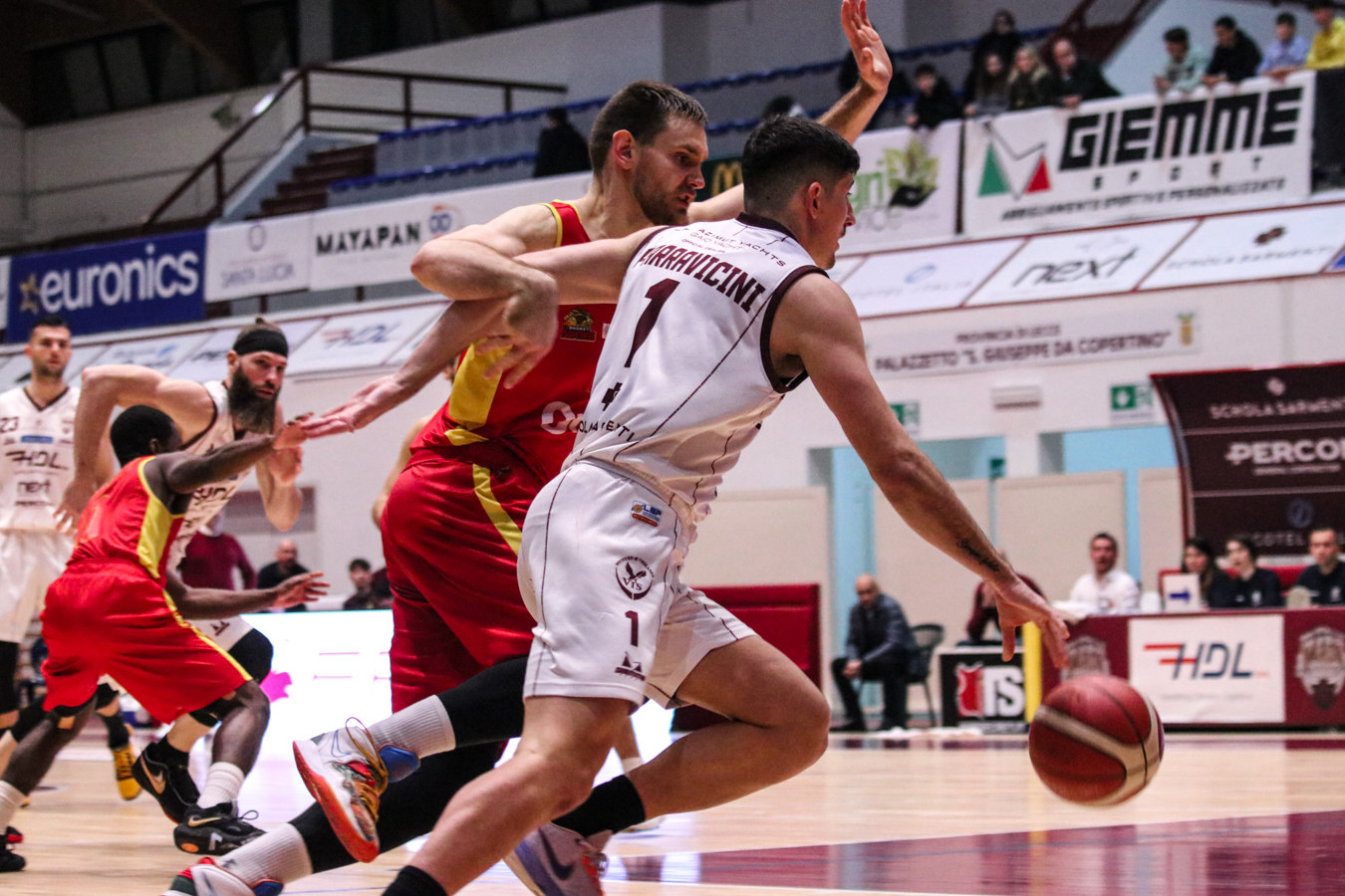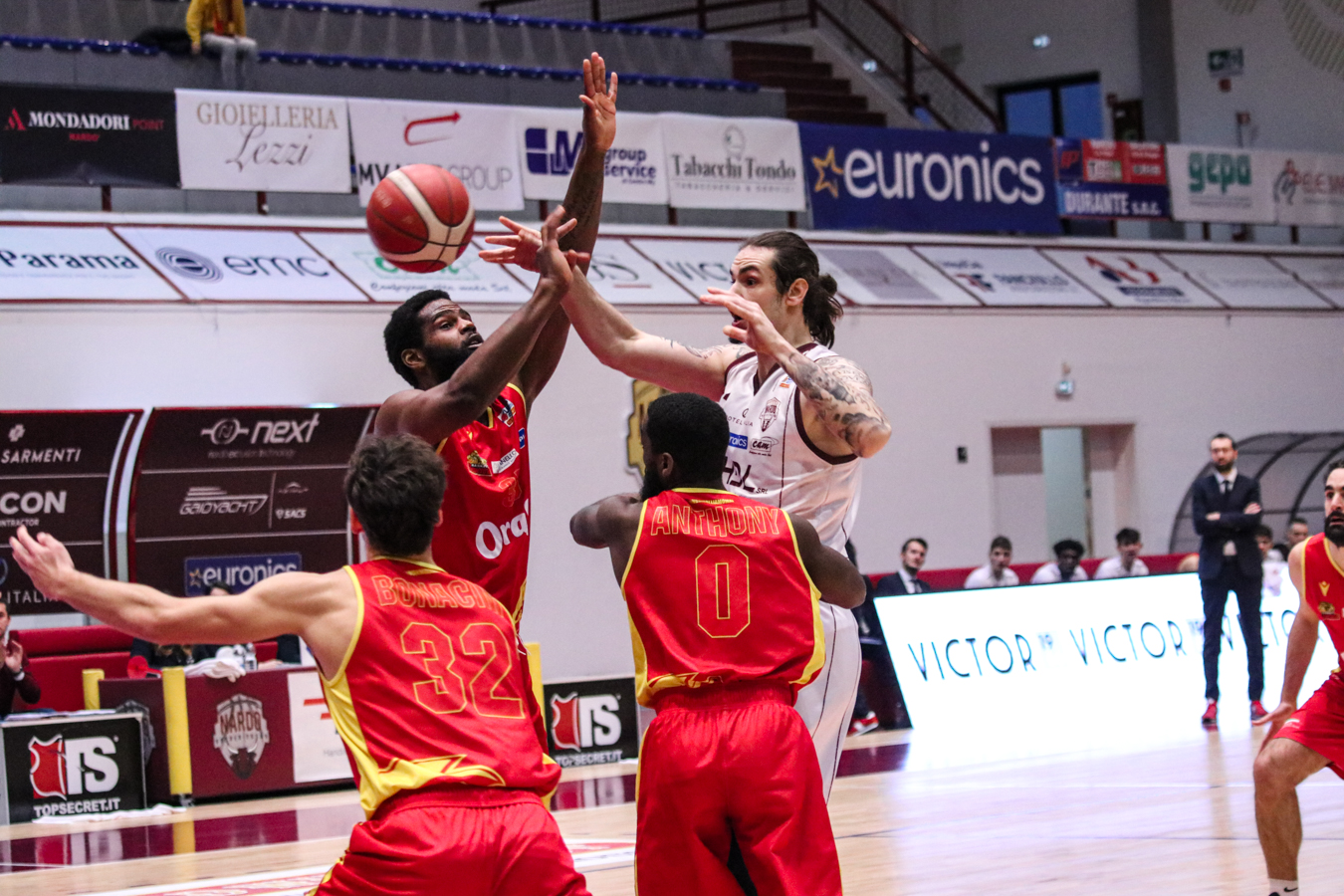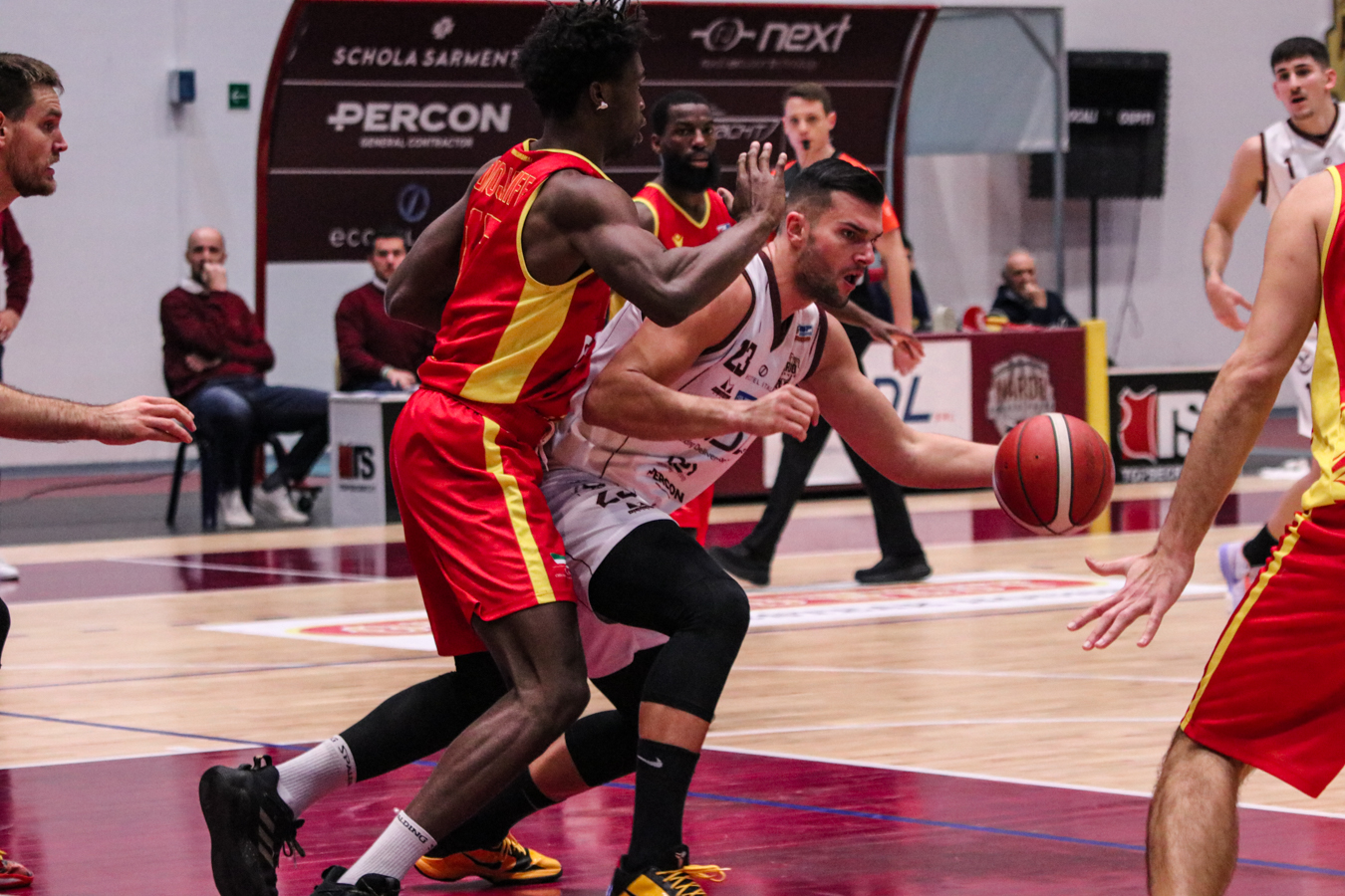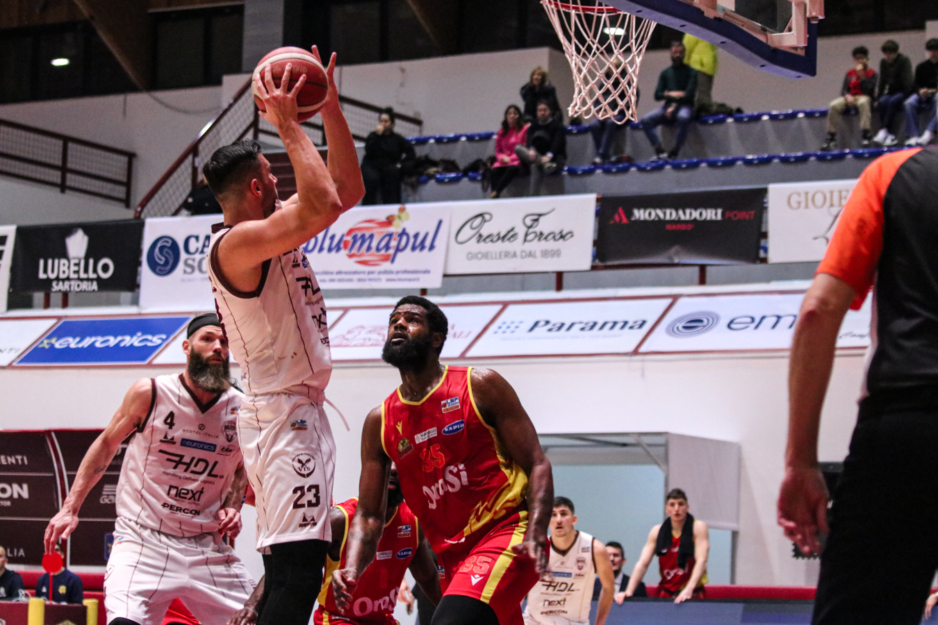 2° QUARTO – La Torre fa 2/2 dai 6,75 metri permettendo a Nardò di restare in partita. I padroni di casa continuano ad inseguire nel tentativo di riagganciare Ravenna che, però, continua a superare il fondo della retina mantenendo saldo il mini-vantaggio. Stojanovic firma il -4 insistendo in fase offensiva e sfruttando la maggiore fisicità, timeout per coach Lotesoriere. Al rientro è blackout granata e allungo ospite, con Bonacini che segna la tripla del 37-44. Termina 41-49 prima dell'intervallo lungo.