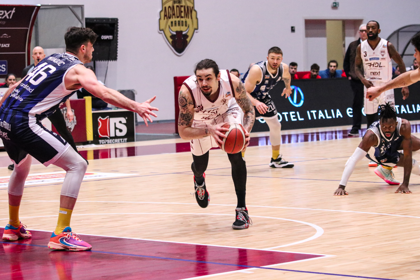1° QUARTO – Nel primo quarto la guida è ospite, con Cividale che affronta a muso duro un Toro privo ancora di Ceron e Parravicini (convocati ma non utilizzabili) e con Stojanovic e Borra a mezzo servizio. HDL sempre sotto nei primi 10 minuti di gioco, con qualche fiammata di Smith che tiene a galla la partita. 16-23 il primo parziale.