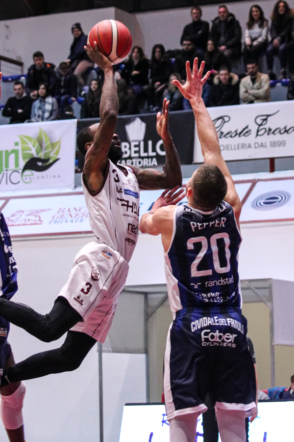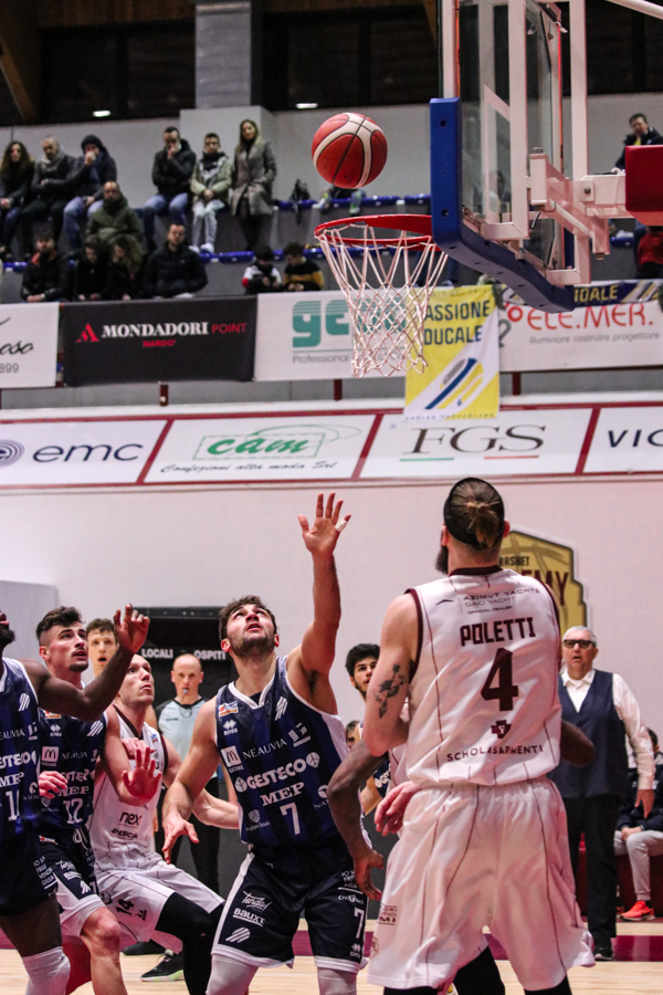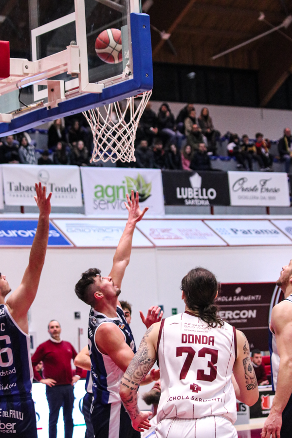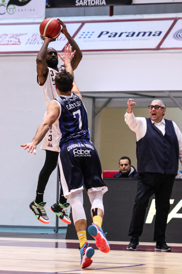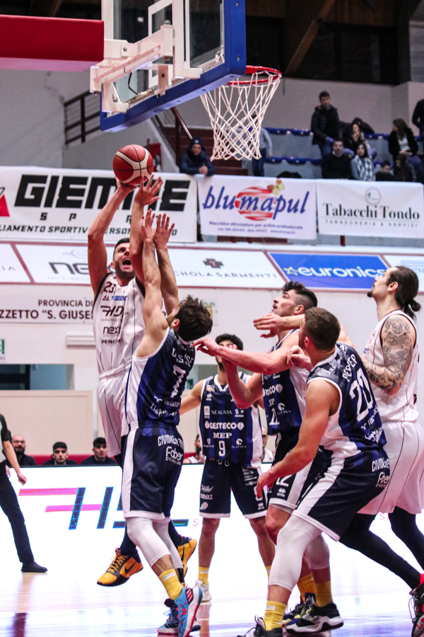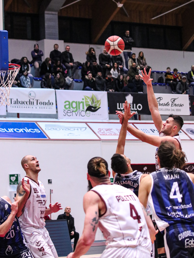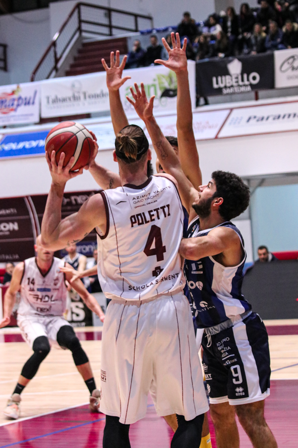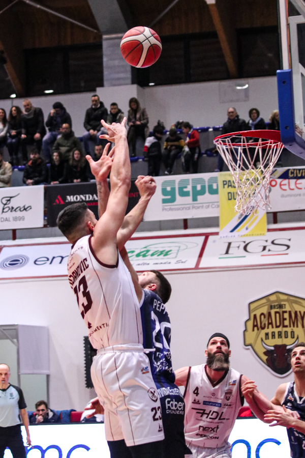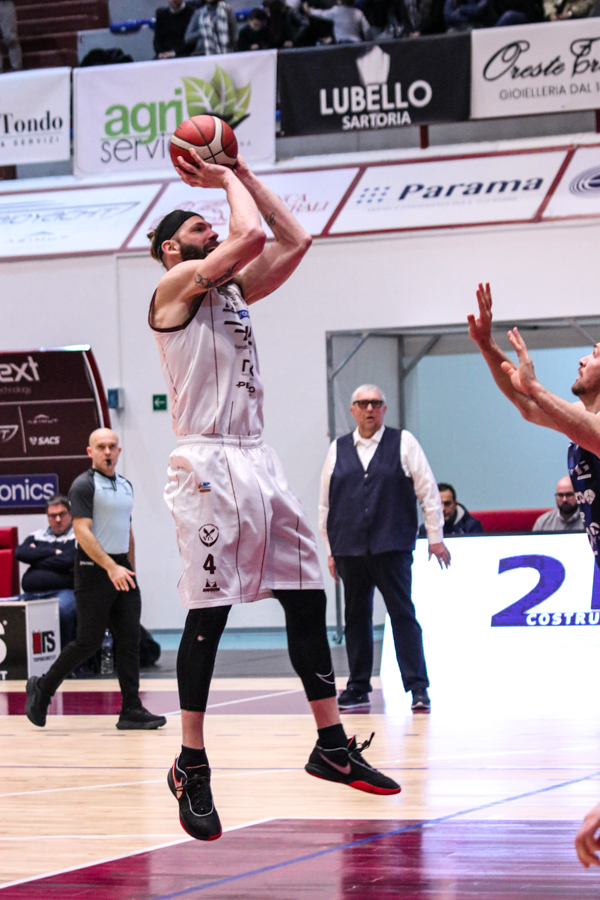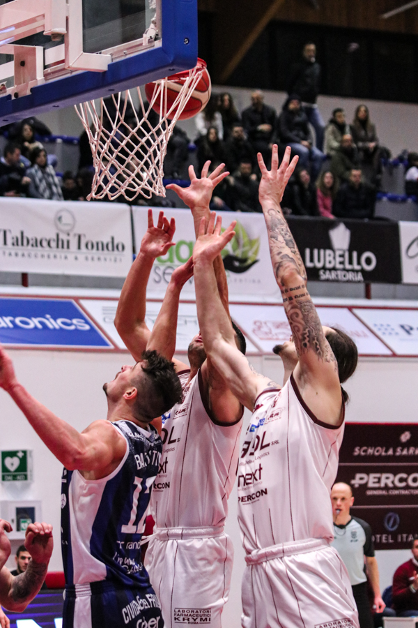 3° QUARTO – Smith inizia a far la voce grossa, Baldasso lo segue e cerca di tirare su i granata. Cassese e Battistini, gestiti alla perfezione da Rota non temono le offensive granata e tengono botta mantenendo il pesantissimo +18 di vantaggio a fine terzo quarto. Un roboante 46-64 è il vantaggio ospite a fine terza frazione in un gelido Pala "San Giuseppe" che si appresta ad assistere ad una sconfitta casalinga.