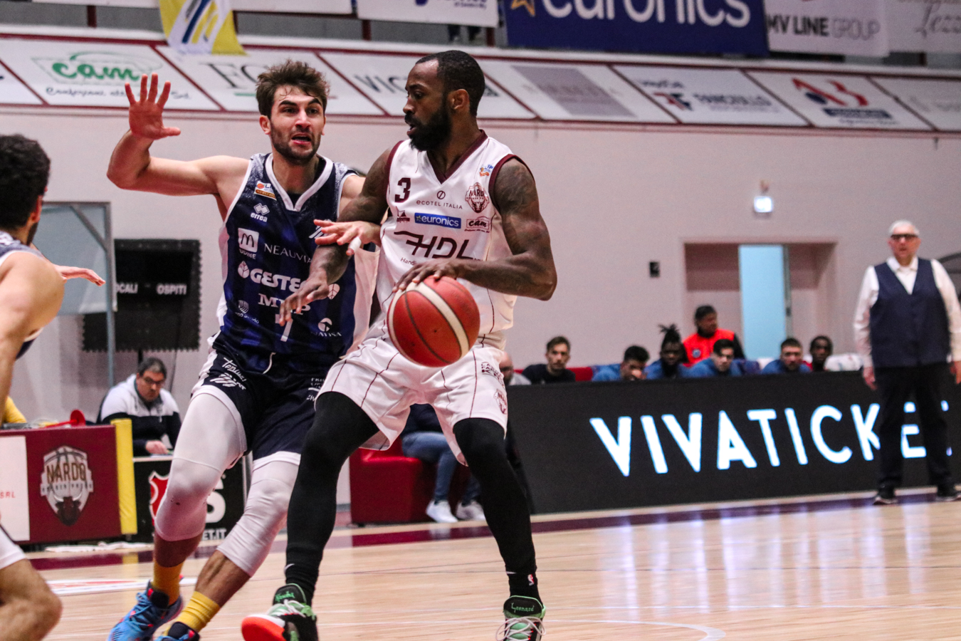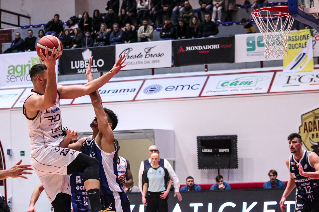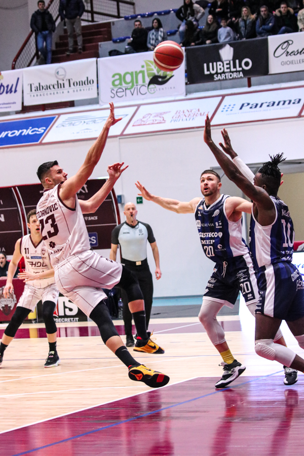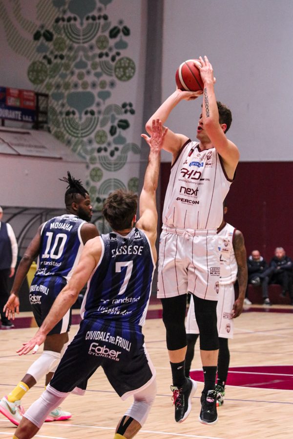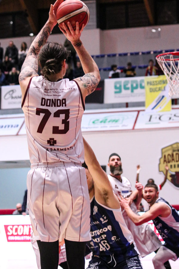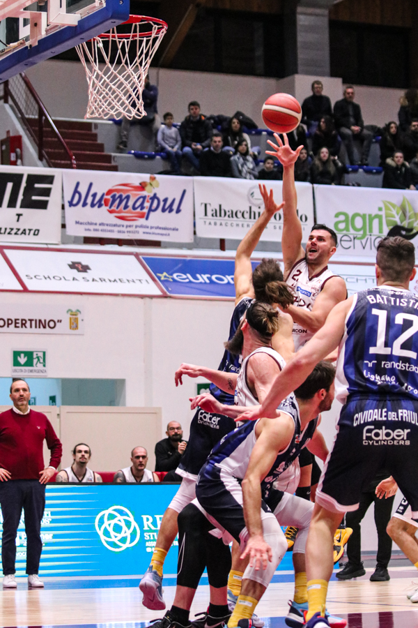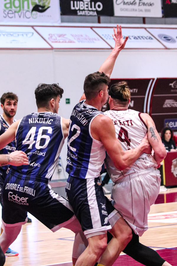 3° QUARTO – Smith inizia a far la voce grossa, Baldasso lo segue e cerca di tirare su i granata. Cassese e Battistini, gestiti alla perfezione da Rota non temono le offensive granata e tengono botta mantenendo il pesantissimo +18 di vantaggio a fine terzo quarto. Un roboante 46-64 è il vantaggio ospite a fine terza frazione in un gelido Pala "San Giuseppe" che si appresta ad assistere ad una sconfitta casalinga.
