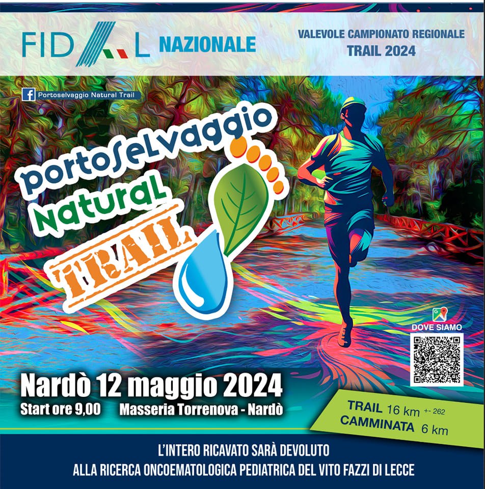 NARDO' - Si è svolta sabato pomeriggio presso il suggestivo Chiostro dei Carmelitani, nel centro storico di Nardò, alla presenza delle massime istituzioni sportive, amministrative e mediche la conferenza stampa di presentazione della nona edizione della Portoselvaggio Natural Trail, gara podistica che si correrà DOMENICA 12 MAGGIO presso il Parco Naturale di Portoselvaggio, con partenza alle ore 9 ed arrivo a Masseria Torrenova.